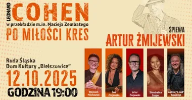 Artur Żmijewski zaprasza na recital poświęcony twórczości Leonarda Cohena. Aktor i reżyser zaprezentuje autorskie interpretacje znanych utworów kanadyjskiego barda w polskich tłumaczeniach, w kameralnej obsadzie z zespołem. Program obejmuje zarówno najbardziej rozpoznawalne kompozycje, jak i mniej oczywiste utwory, podkreślone muzyczną aranżacją i współpracą z zaproszonymi muzykami.